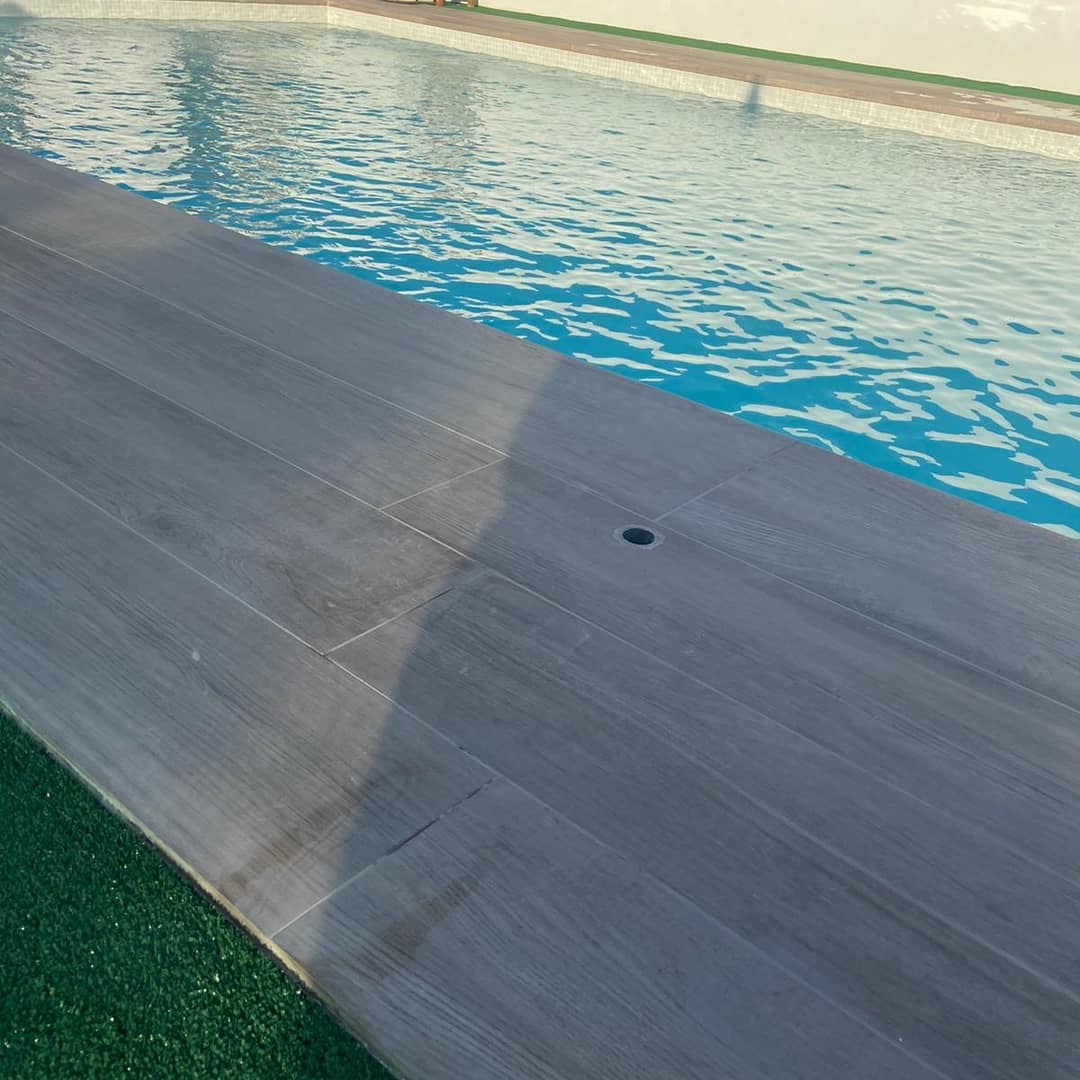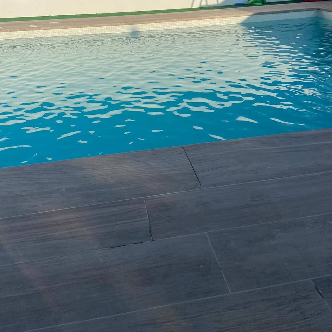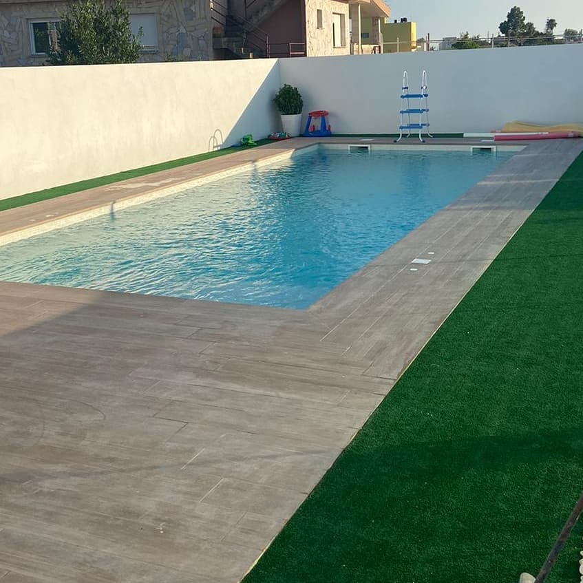 Acabados y alrededores de piscina con revestimiento de poliéster en Sant Jaume d’Enveja.